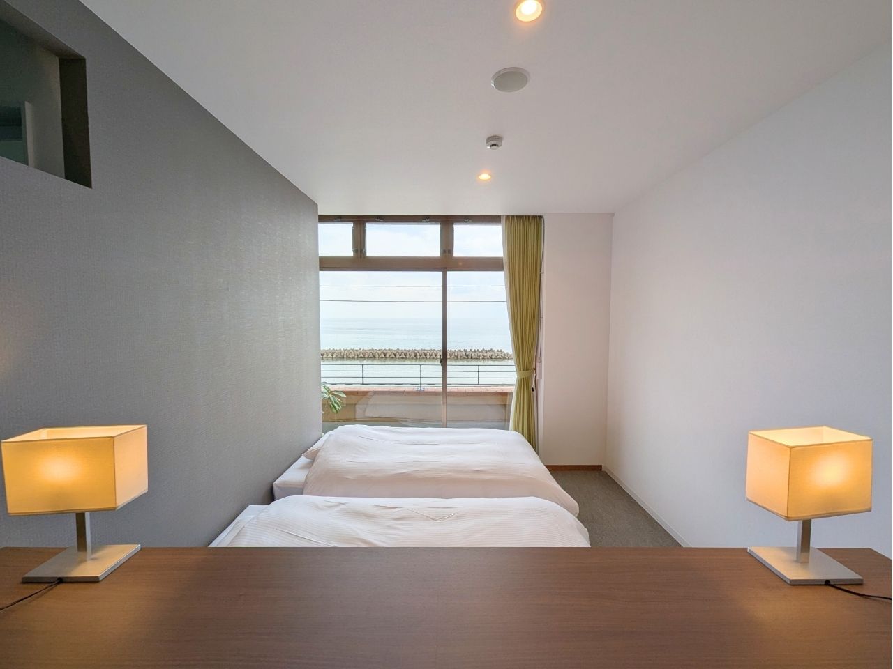 海が見える洋室のお部屋。2名で過ごすのに心地よい空間です。お風呂からも海が見渡せます。